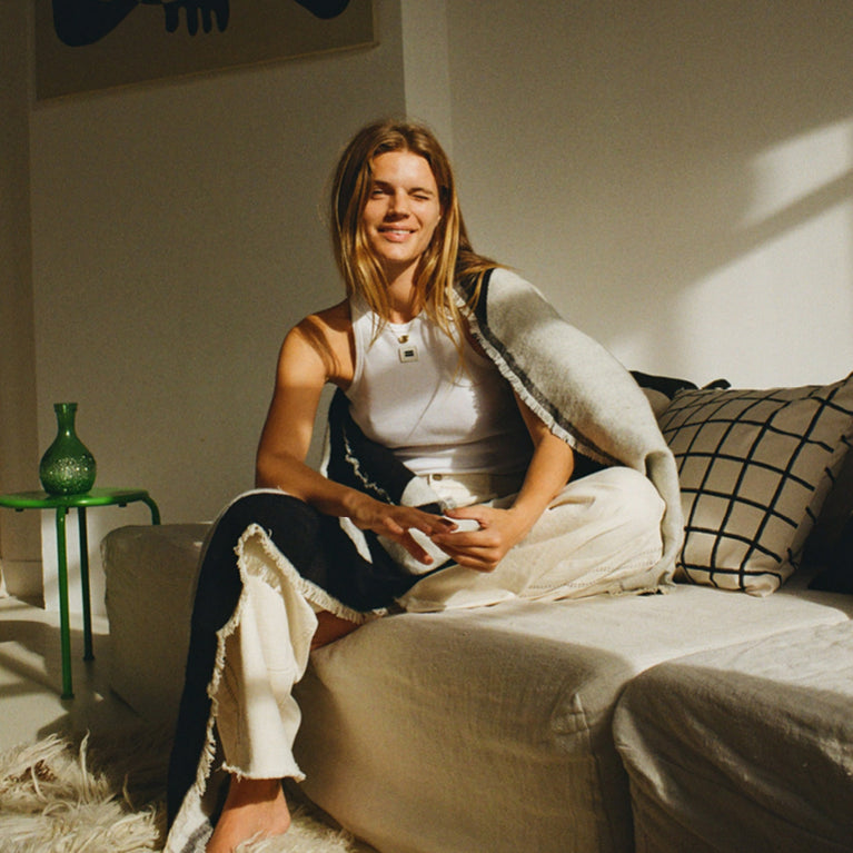 Ich würde Acrylfarbe auf Leinwand sagen, sie ist so gleichmäßig und dennoch leicht zu strukturieren. Aber ich bin auch total begeistert von Keramik und es war auch sehr aufregend, meine Designs auf Kissen und Plaids zu sehen.