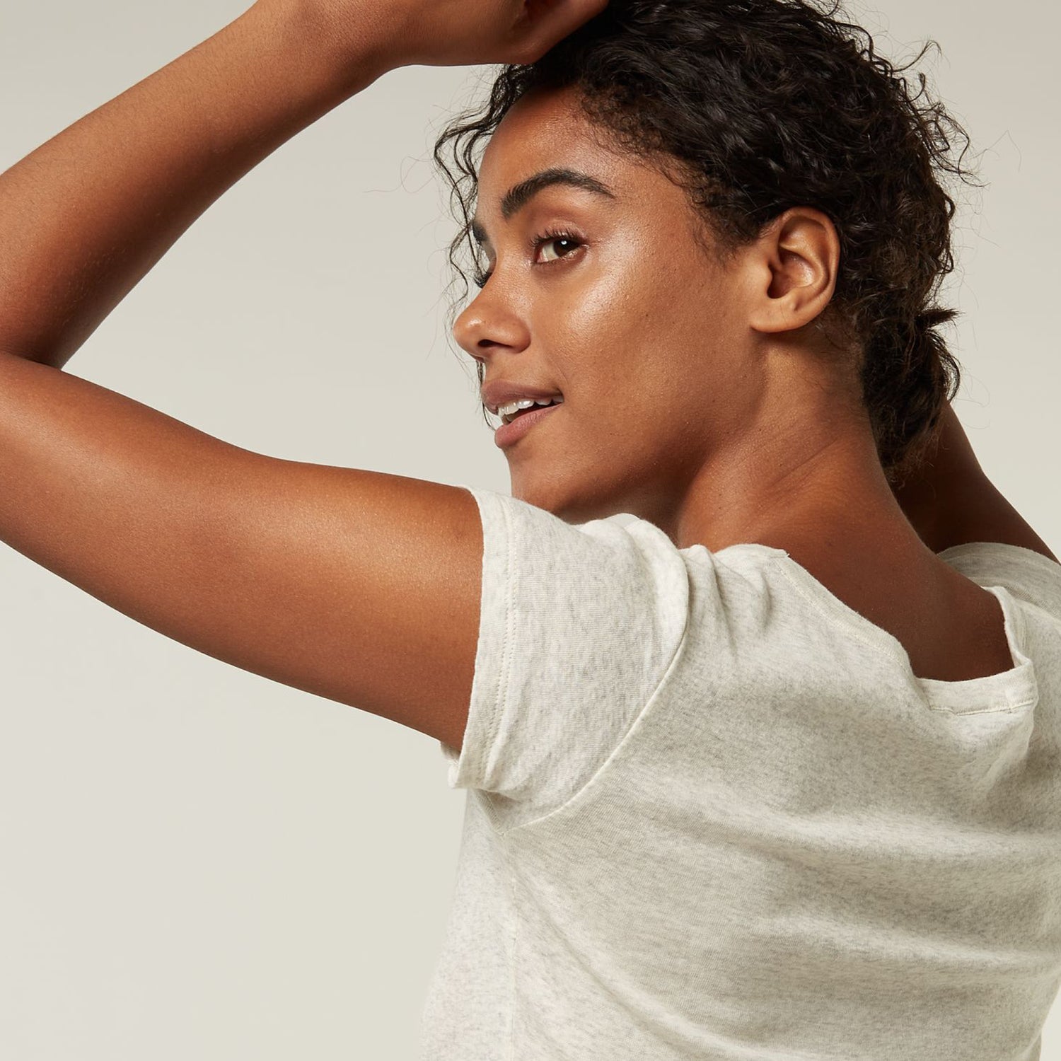 Baumwolle hält viel aus und kann ohne allzu große Probleme gewaschen, getrocknet und gebügelt werden. Halten Sie helle Kleidungsstücke hell, indem Sie Flecken in Bereichen wie Achselhöhlen, Halsausschnitten und Manschetten vorbehandeln. Vermeiden Sie jedoch Bleichmittel, da dies den Stoff beschädigt und außerdem schlecht für die Umwelt ist. Versuchen Sie es stattdessen mit Zitronensaft (bei Flecken) oder Essig (zur Entfernung von Gerüchen).