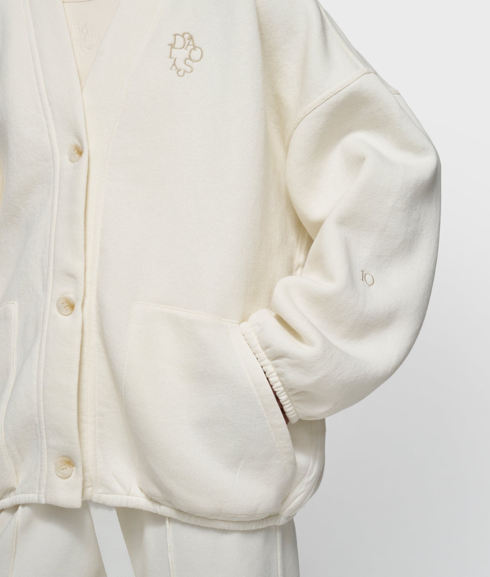 Oversized Baseballjacke aus weichem Baumwoll-Schaumfleece. Mit Knopfleiste mit 3 Knöpfen, zwei aufgesetzten Taschen, überschnittenen Ärmeln, elastischen Ärmelbündchen und Saum, einer „Curly 10“-Stickerei auf der linken Brust sowie einem auf dem linken Ärmel aufgestickten „10“-Monogramm.