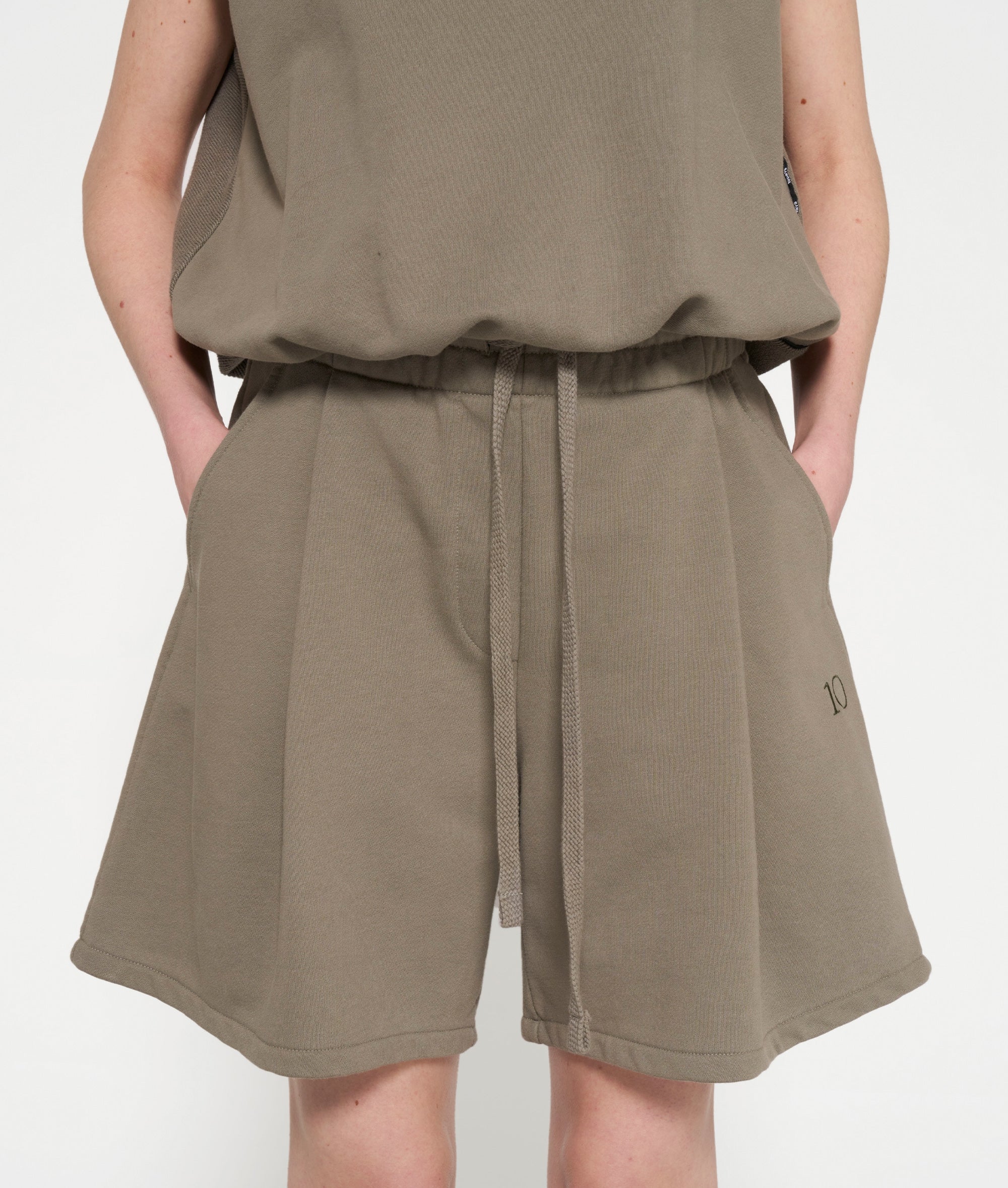 Kurze Bermuda-Jogger in Relaxed Fit aus einem weichen Baumwollmix-Fleece. Mit einem elastischen Taillenbund und Kordelzug, Eingrifftaschen, Falten vorne und einem aufgestickten „10“-Logo unter der linken Eingrifftasche.