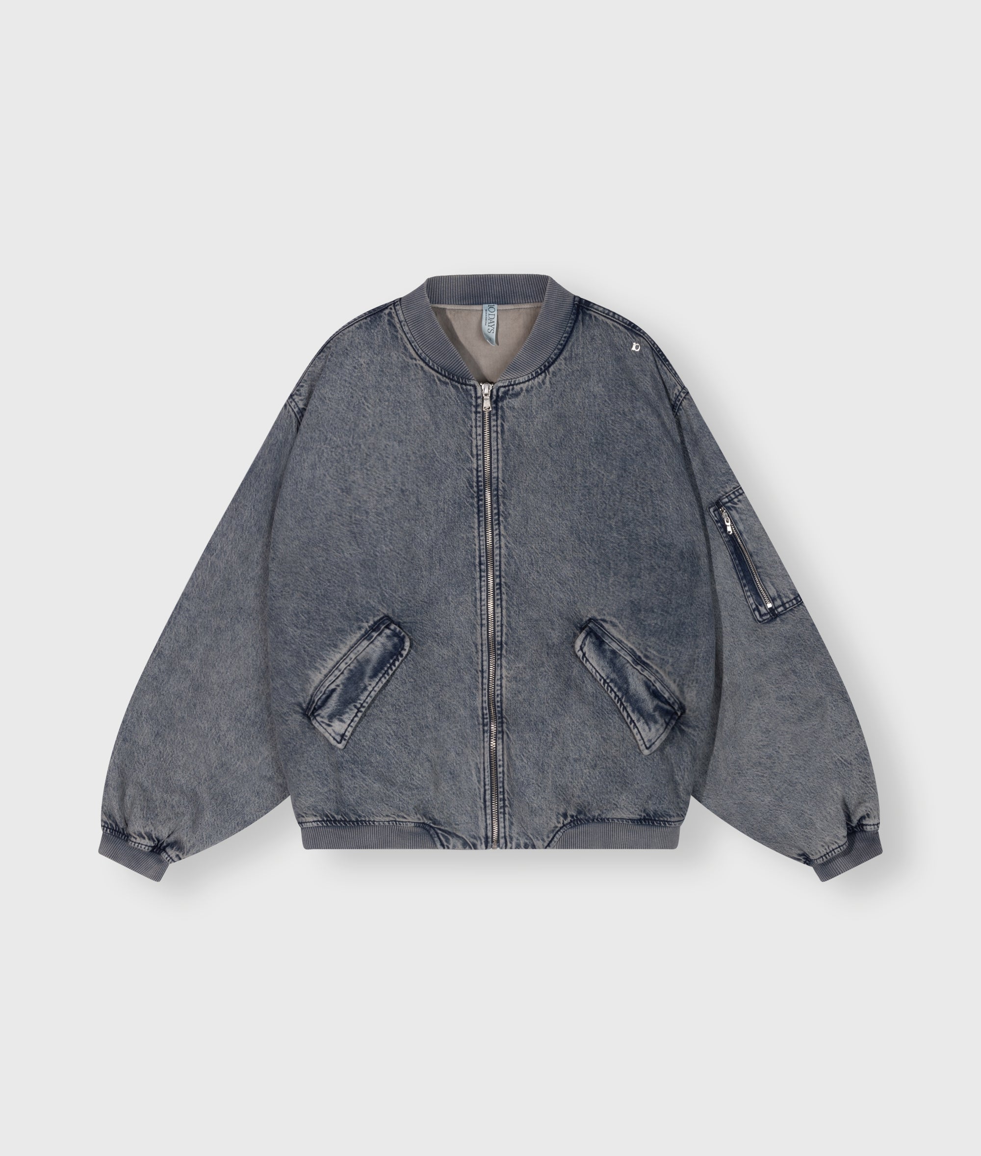 Relaxed Fit Bomberjacke aus einem Baumwoll- und Lyocell-Denimmix. Mit einem Innenfutter apus 100 % Baumwolle, einem Rundhalsausschnitt aus Rippstrick, einem Reißverschluss vorne, Rippstrick-Ärmelbündchen mit Druckknöfen, einem Rippstricksaum, schrägen Pattentaschen vorne und einer Reißverschlusstasche am linken Ärmel, die mit einem aufgestickten „10“-Logo versehen ist.