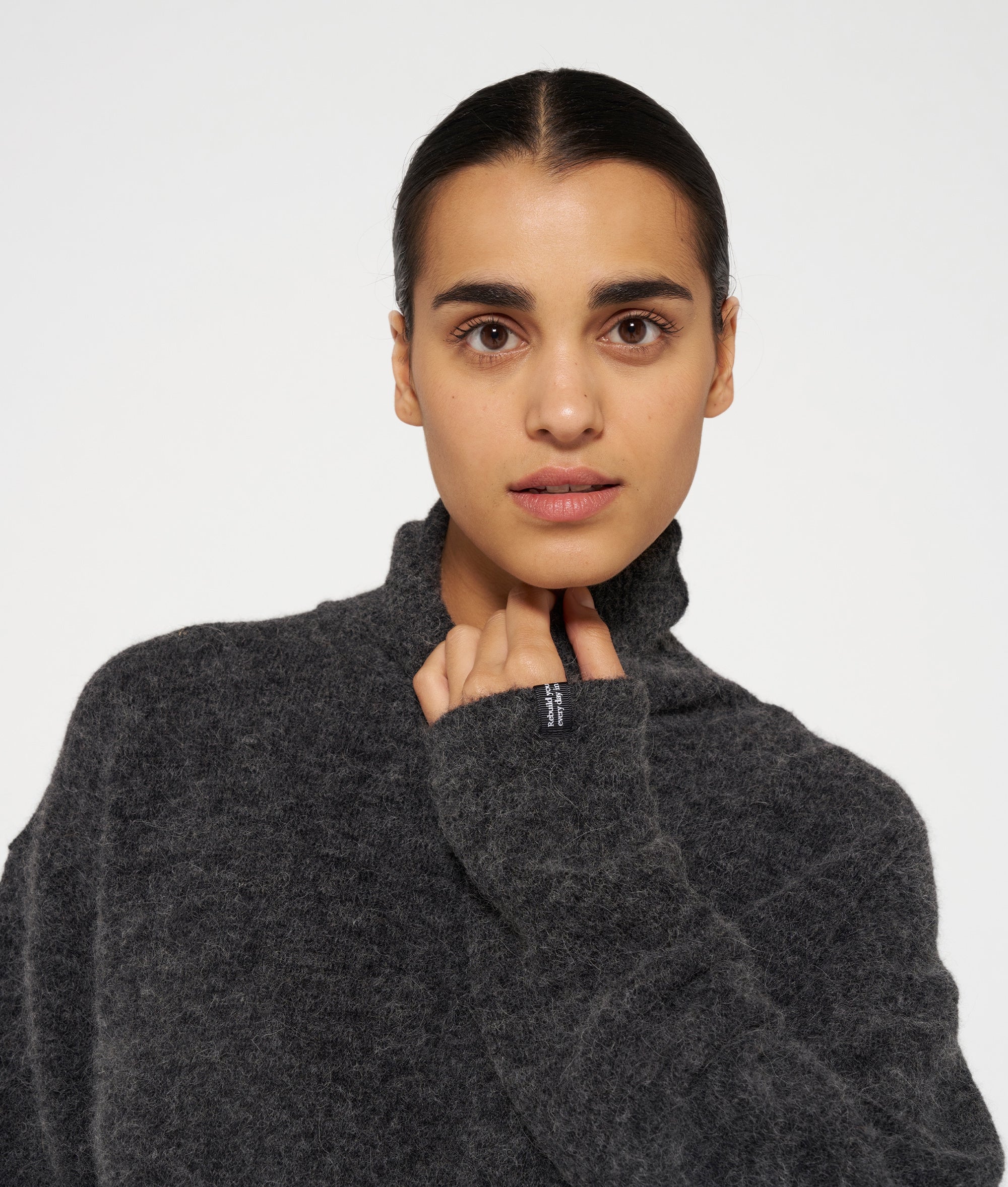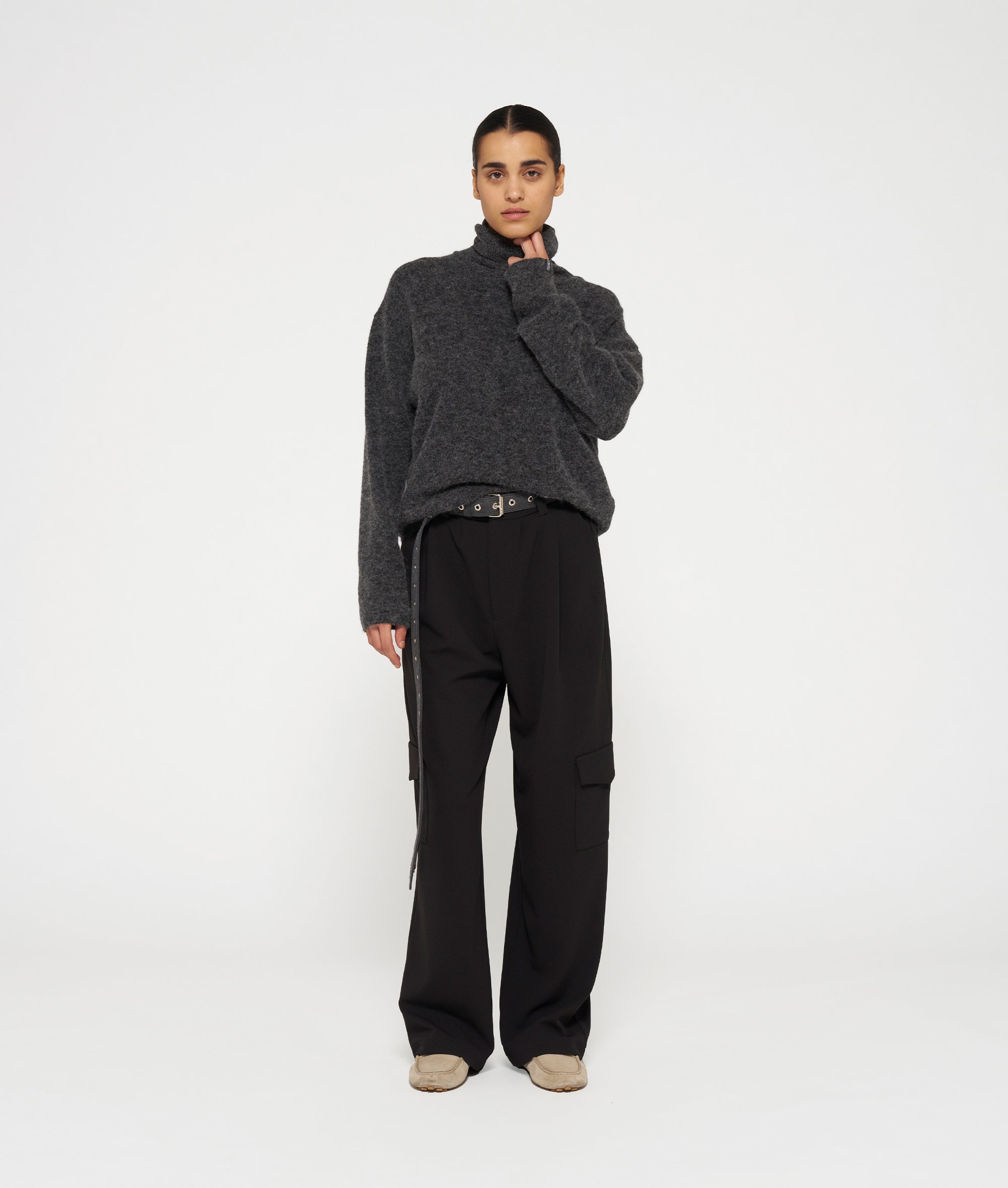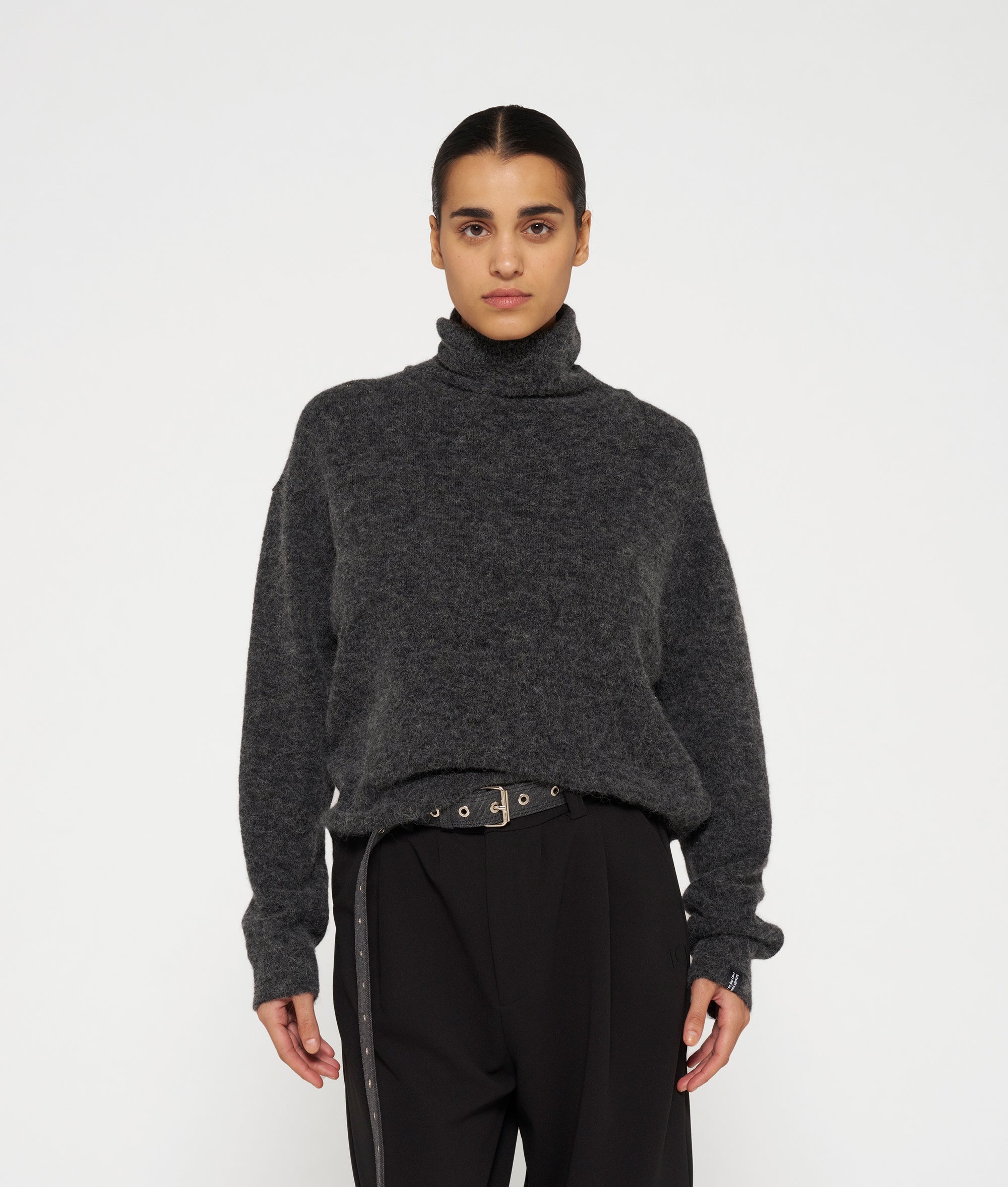 Gestrickter Rollkragenpullover mit Relaxed Fit aus einem weichen Alpaka-Wollmix. Mit Rippstrickbündchen, einem Tagline-Label unten am linken Ärmel und einem aufgestickten „10“-Monogramm auf dem Rücken.