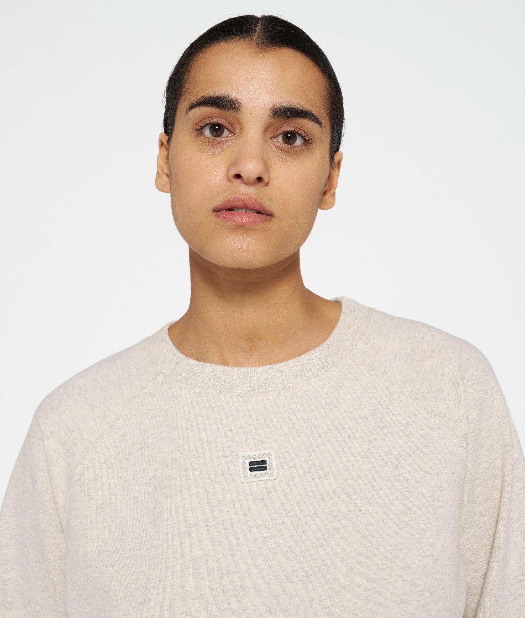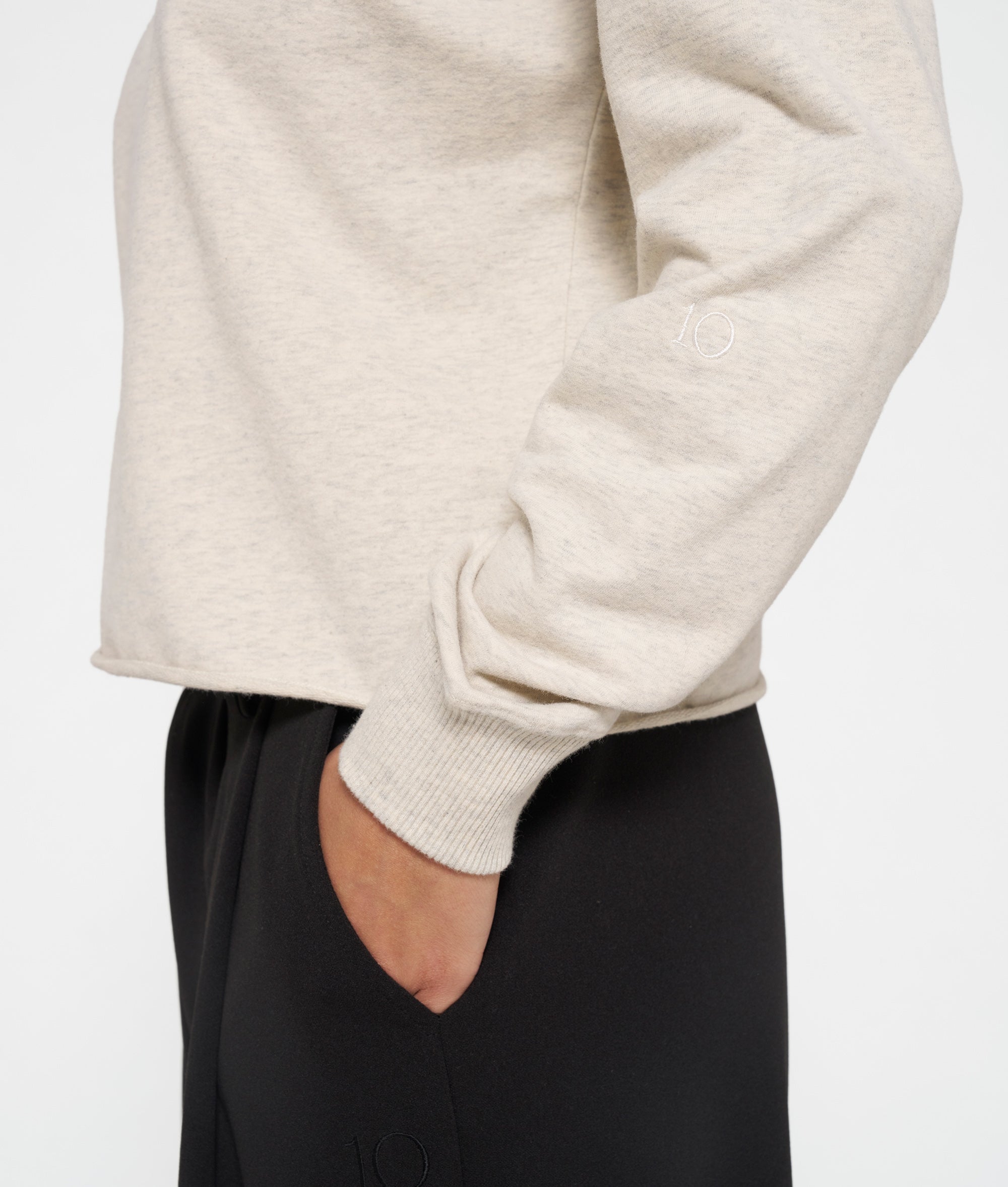 Regular Fit Crew Neck Sweater mit einem mit Perlen besetzten „Mini Stripes“-Logo-Patch auf der Brust aus weichem 10DAYS-Babyfleece aus Baumwolle. Mit Rippenstrickbündchen an Ausschnitt und Ärmelabschlüssen, einem auf dem linken Ärmel aufgestickten „10“-Monogramm und einem Saum in Raw-Edge-Optik.