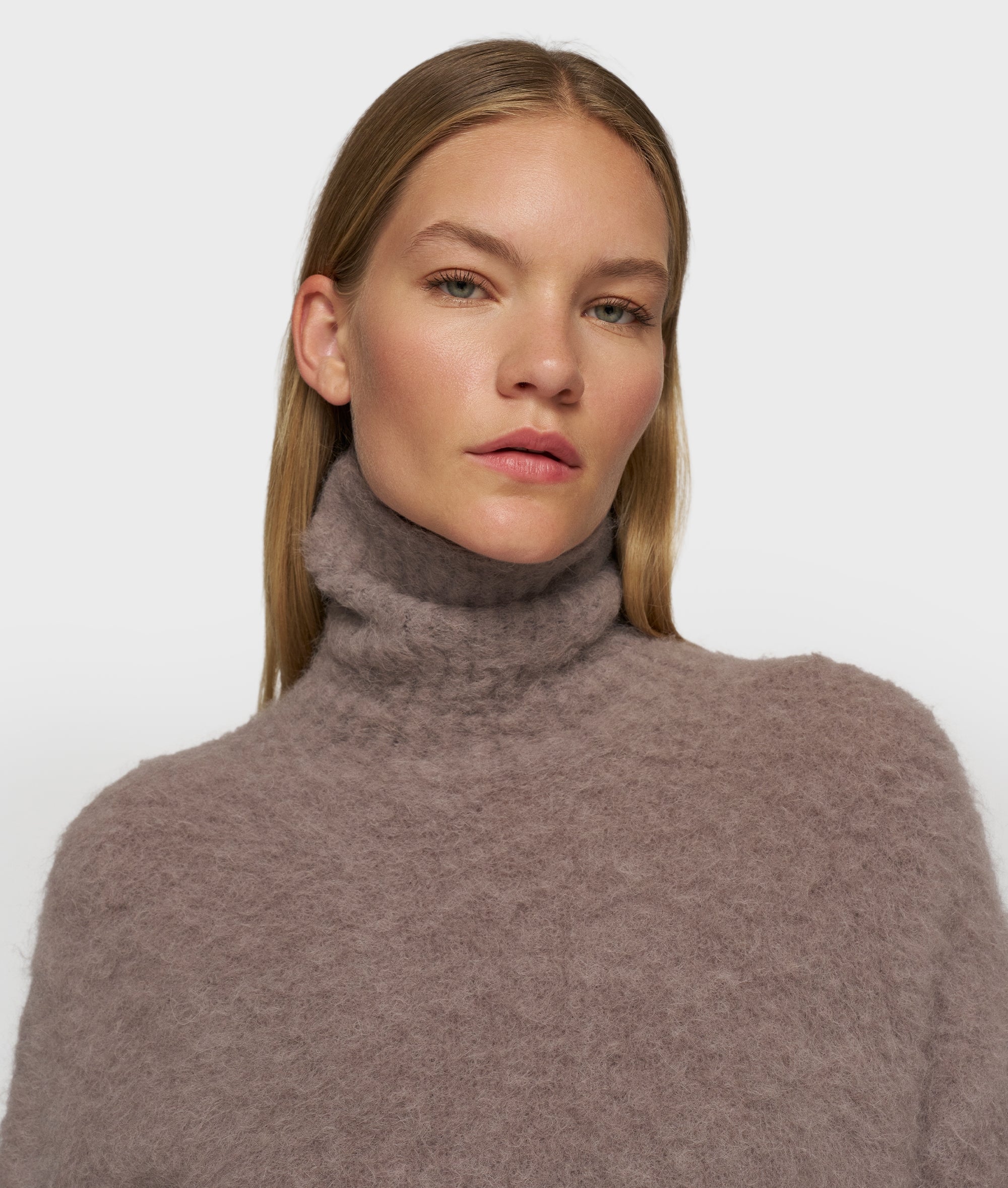 Kurzer Strickrollkragenpullover mit Regular Fit aus weichem Alpaka-Woll-Mix. Mit Rippenstrickbündchen, Ballonärmeln und einer „10“-Monogramm-Perle oben am Rücken.