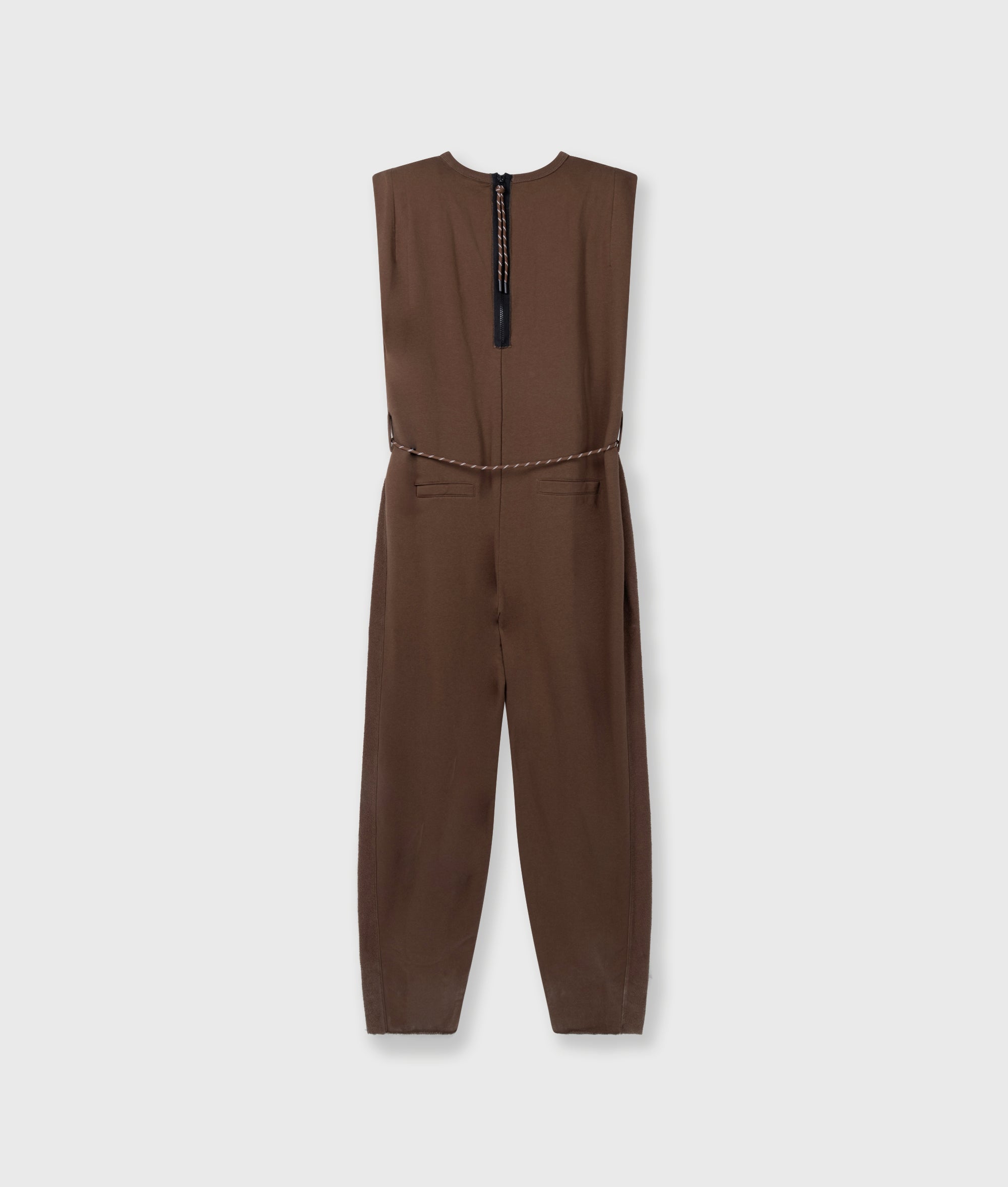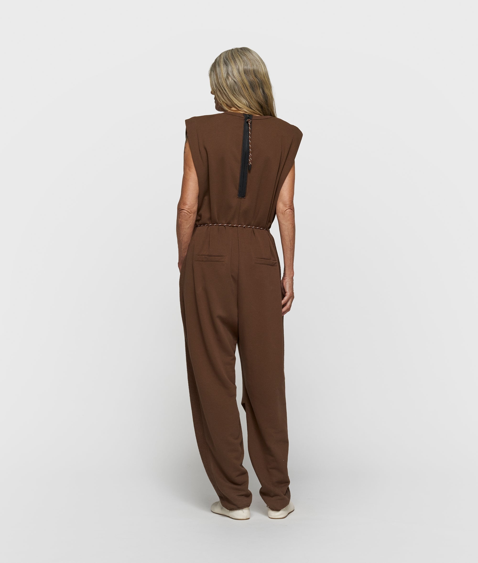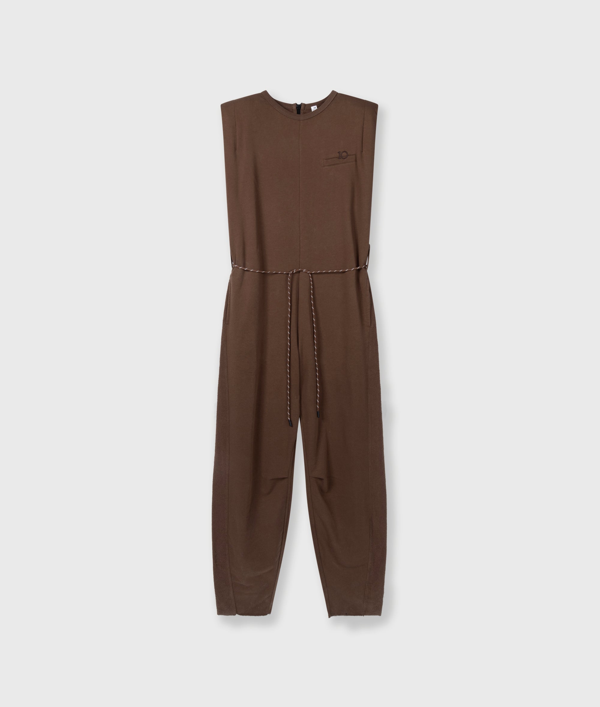 Oversized Fit Jumpsuit aus weichem und geschmeidigem, leichten Oldschool-Fleece. Mit einem Rundhalsausschnitt mit Rippenbündchen, abnehmbaren Schulterpolstern mit Druckknopfverschluss auf der Innenseite, einem durchgehenden Reißverschluss auf der Rückseite, einer angedeuteten Brusttasche mit aufgesticktem „10“-Monogramm, Eingrifftaschen und angedeuteten Paspeltaschen am Gesäß. Mit Falten an den Knien, abnehmbarem Bindegürtel und unbearbeitetem Saum.