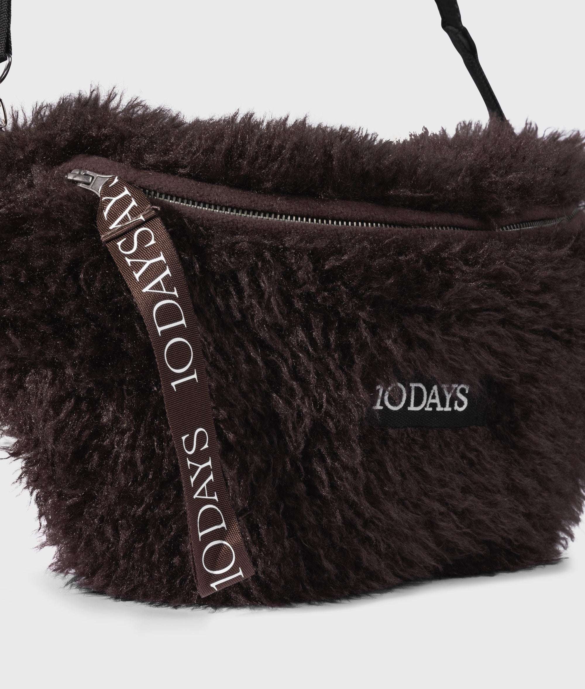 Pelz-Crossbody-Tasche aus weichem Fleece-Fell. Mit einem verstellbaren Band und Schnallenverschluss, Reißverschluss, einer Gesäßtasche mit Reißverschluss, einem „10DAYS“-Logo-Reißverschlussanhänger, einer Innentasche sowie einem „10DAYS“-Label an der Vorderseite. Maße: 40 cm x 20 cm. Maße des Bandes: 100 cm.