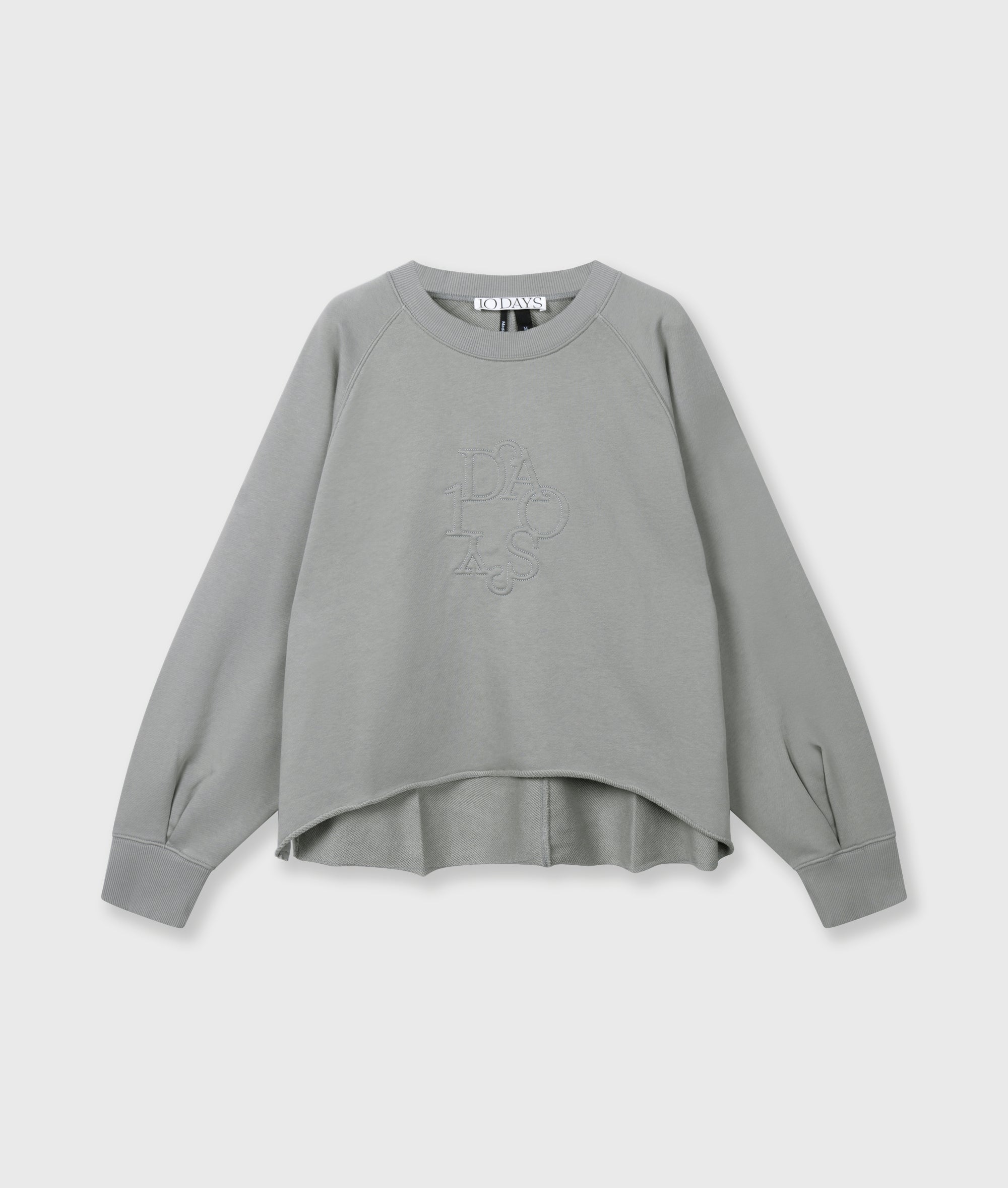 Relaxed Fit Sweater mit Rundhalsausschnitt aus Babyfleece aus weicher Baumwolle. Mit Raglanärmeln, einem Saum in Raw Edge-Optik, einem auf dem Ärmel aufgestickten „10“-Monogramm und einem auf der Brust applizierten „Curly 10DAYS“-Label.