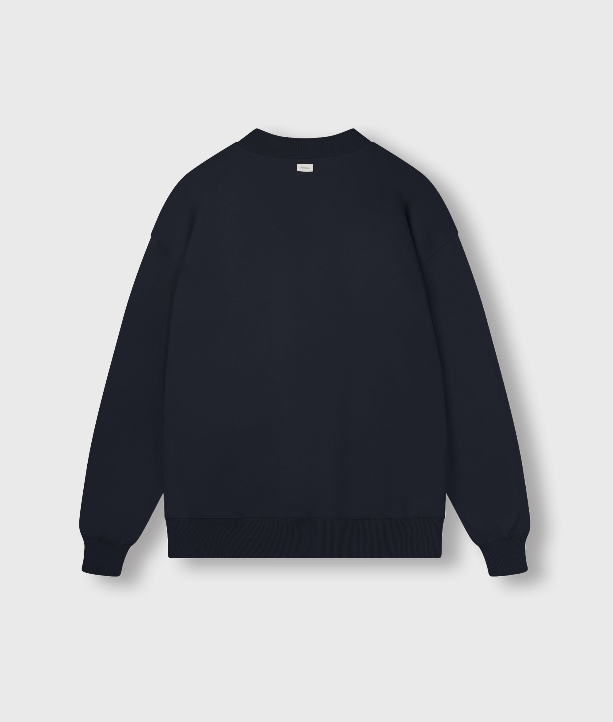 Sweater in Relaxed Fit-Passform, aus heavy Baumwollfleece gefertigt. Mit einem Rundhalsausschnitt in Rippstrickstruktur, einer im Brustbereich applizierten "T-D"-Stickerei, Ärmelmanschetten in Rippstrick und einem Rippstricksaum mit vorderseitigem Label.