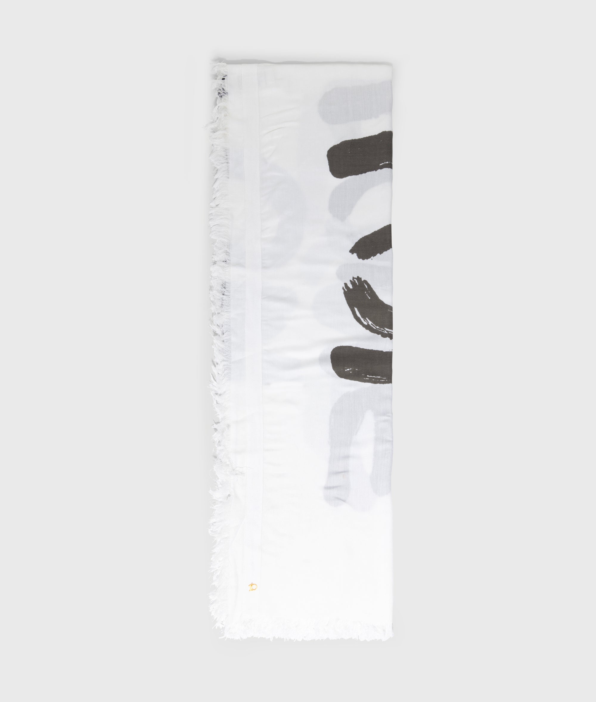 Schal aus einem luftigen Viskosemix. Versehen mit kleinen Fransen, einem „Love on Top Painted“-Print mit goldenen Perlen auf dem Buchstaben L sowie einem dezenten Tapedetail entlang des Saums mit einer „10“-Monogrammperle am Ende. Maße: 115 x 115 cm.