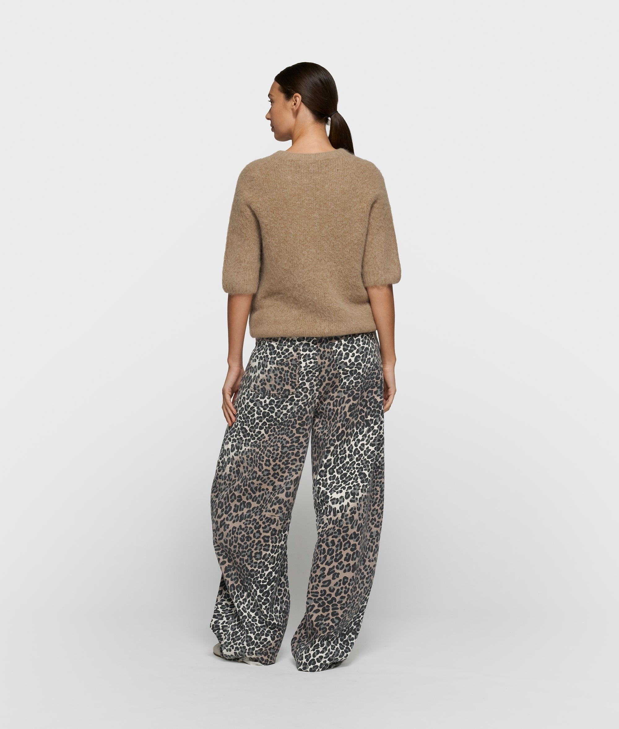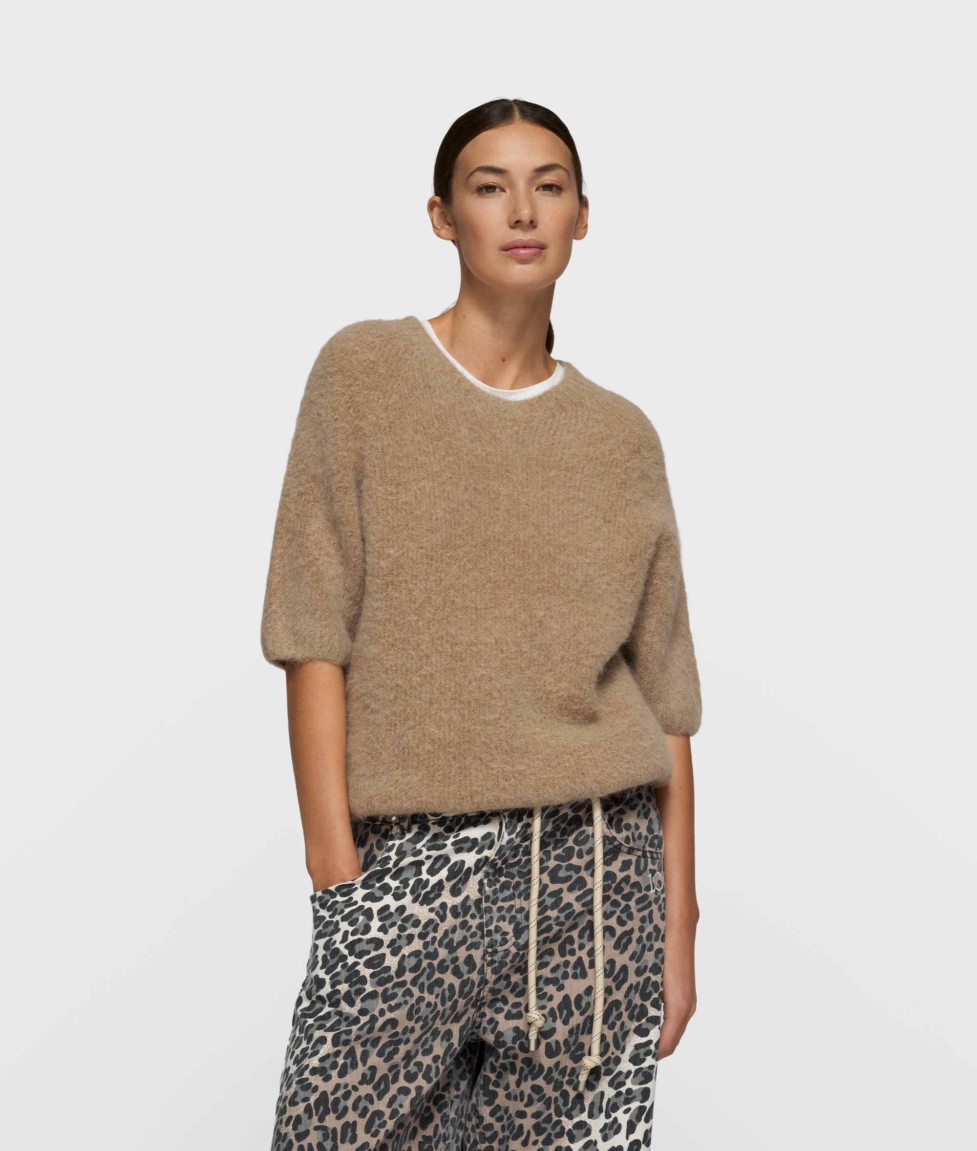 Relaxed Fit Strickpullover mit kurzen Ärmeln, aus einem weichen Alpaka-Woll-Mix gefertigt. Mit Rippenstrickbündchen, einem auf dem Rücken aufgestickten „10“-Monogramm und einem am Saum applizierten Label.