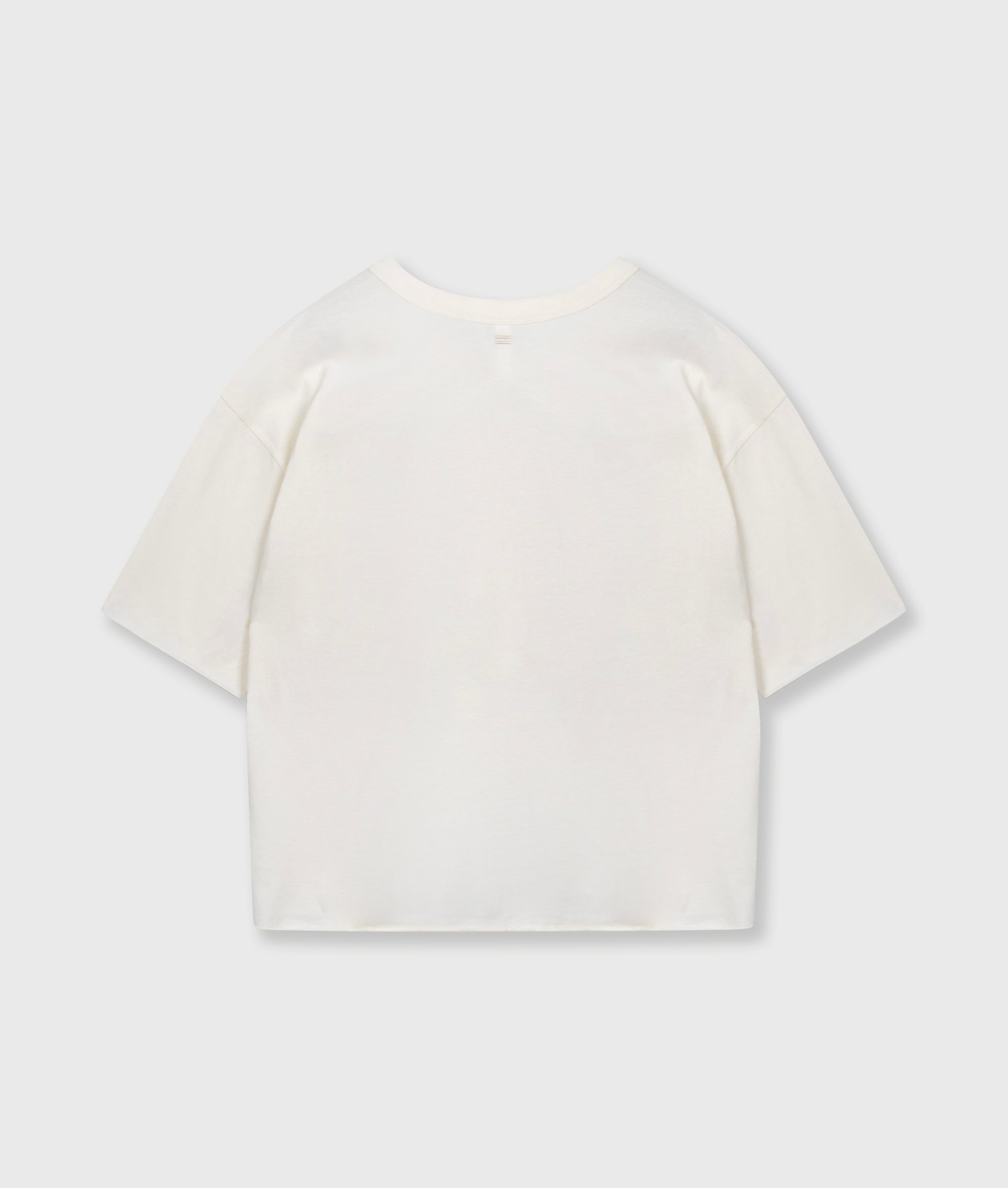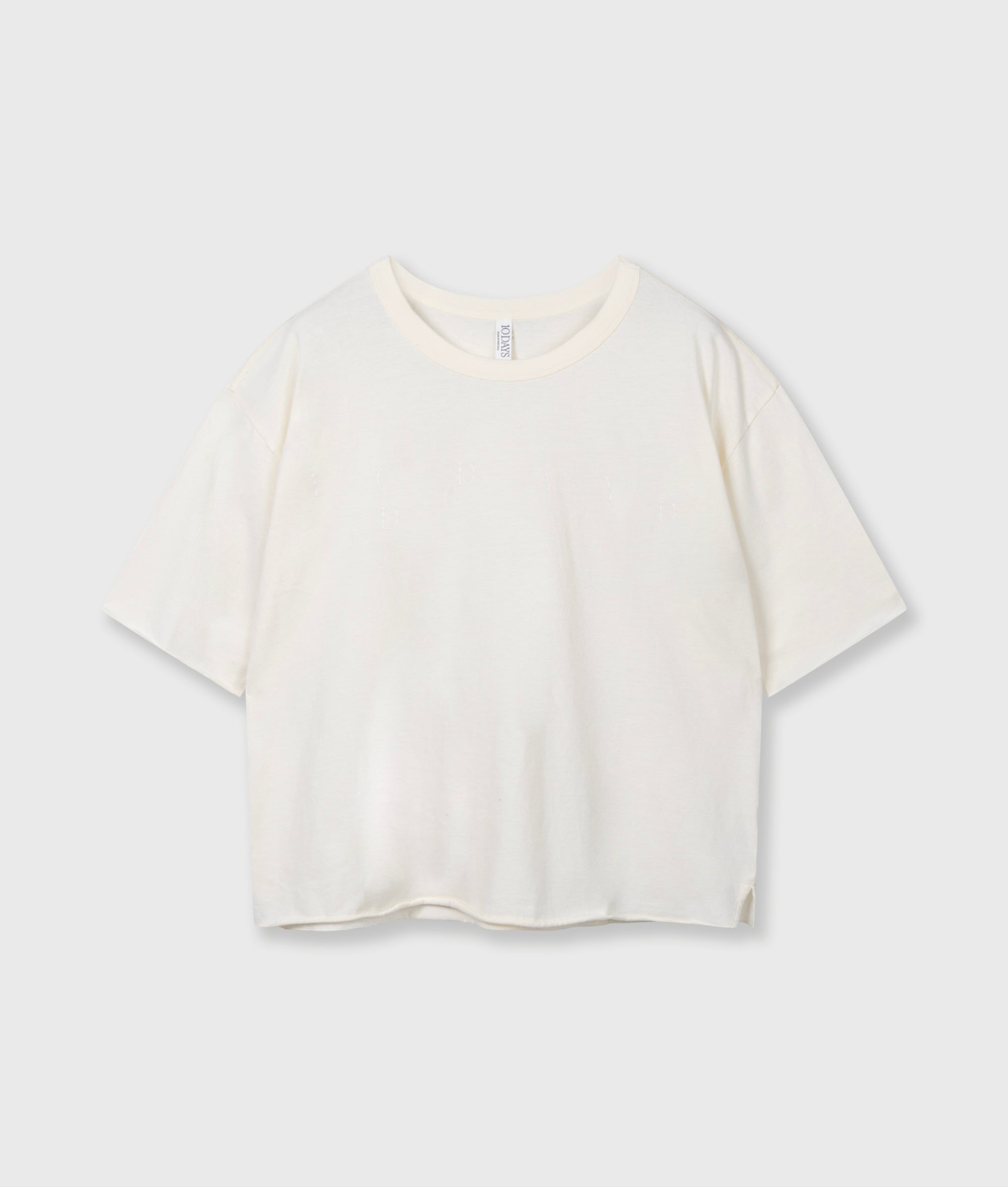 Relaxed Fit T-Shirt aus weicher GOTS-zertifizierter Bio-Baumwolle. Mit einem Rundhalsausschnitt aus Rippenstrick, einem „Clean 10DAYS“-Aquarelldruck auf der Brust, Raw-Edge-Schulternähten und -Saum und einer auf dem Rücken applizierten Mini-Stripes-Stickerei.