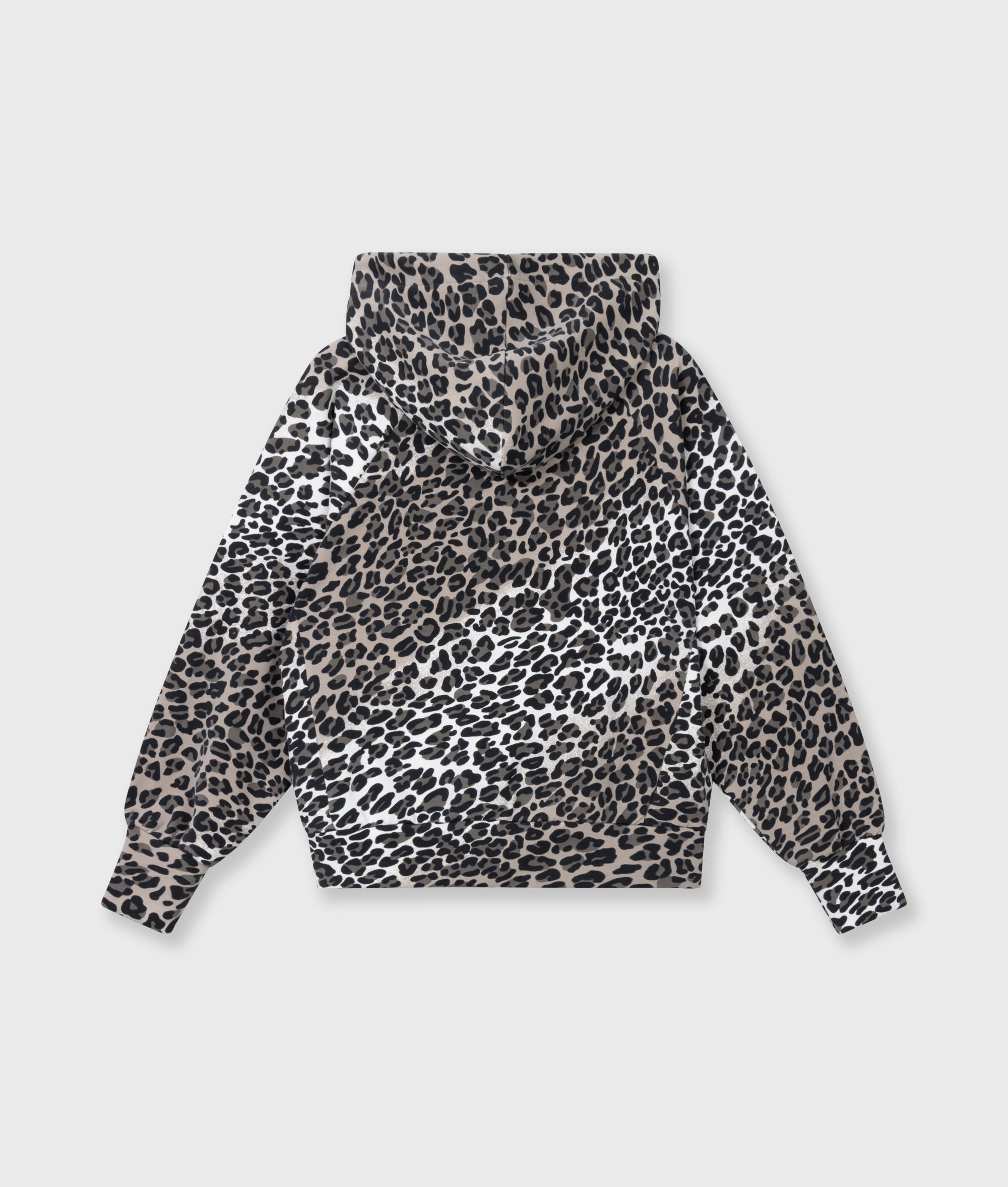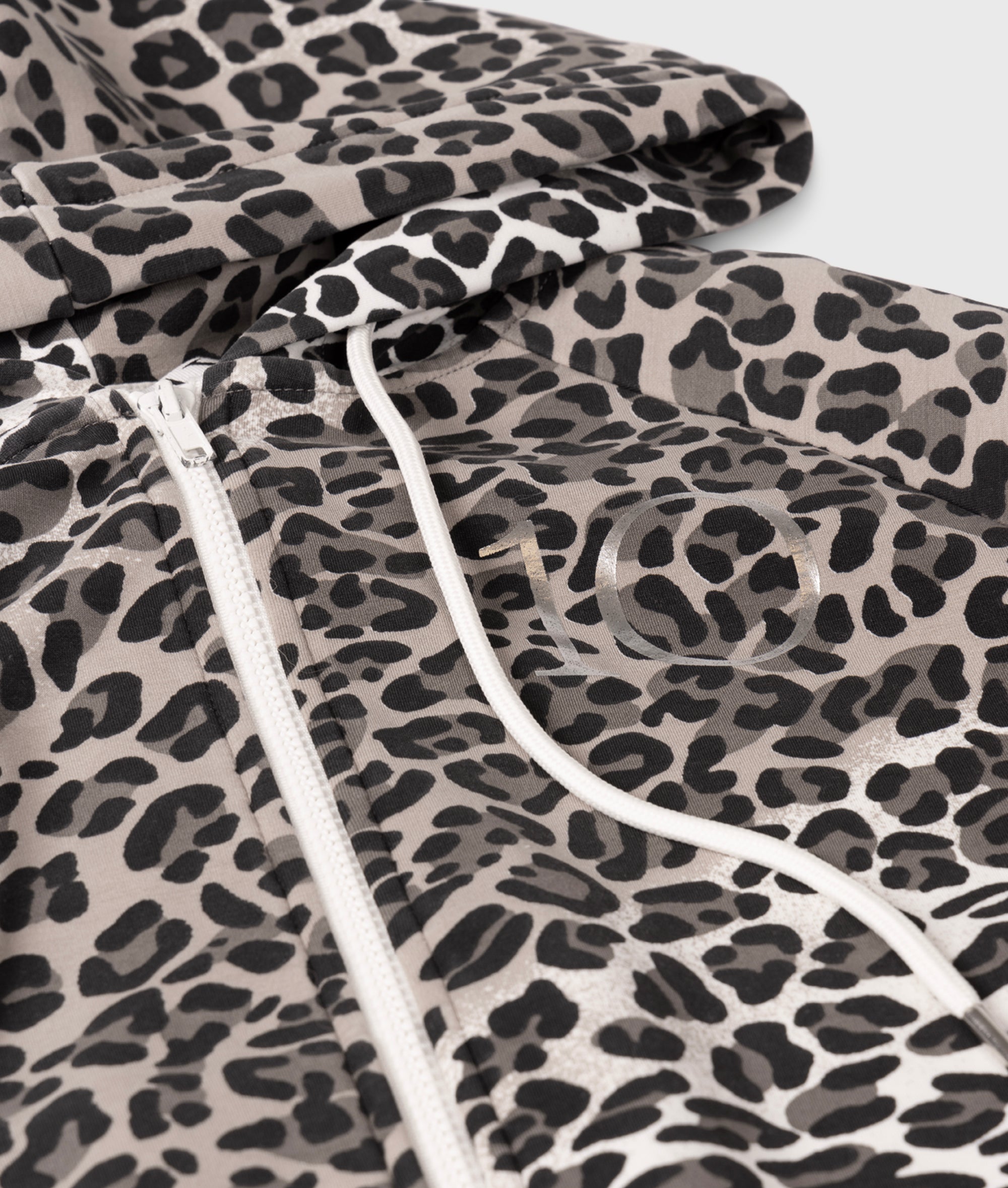 Relaxed Fit Hoodie mit Leopardenprint aus superweichem und flexiblem Aktiv-Scuba. Mit Reißverschluss, einem auf der linken Brust applizierten „10“-Monogramm-Folienprint, einer Kapuze mit Tunnelzug und Eingrifftaschen.