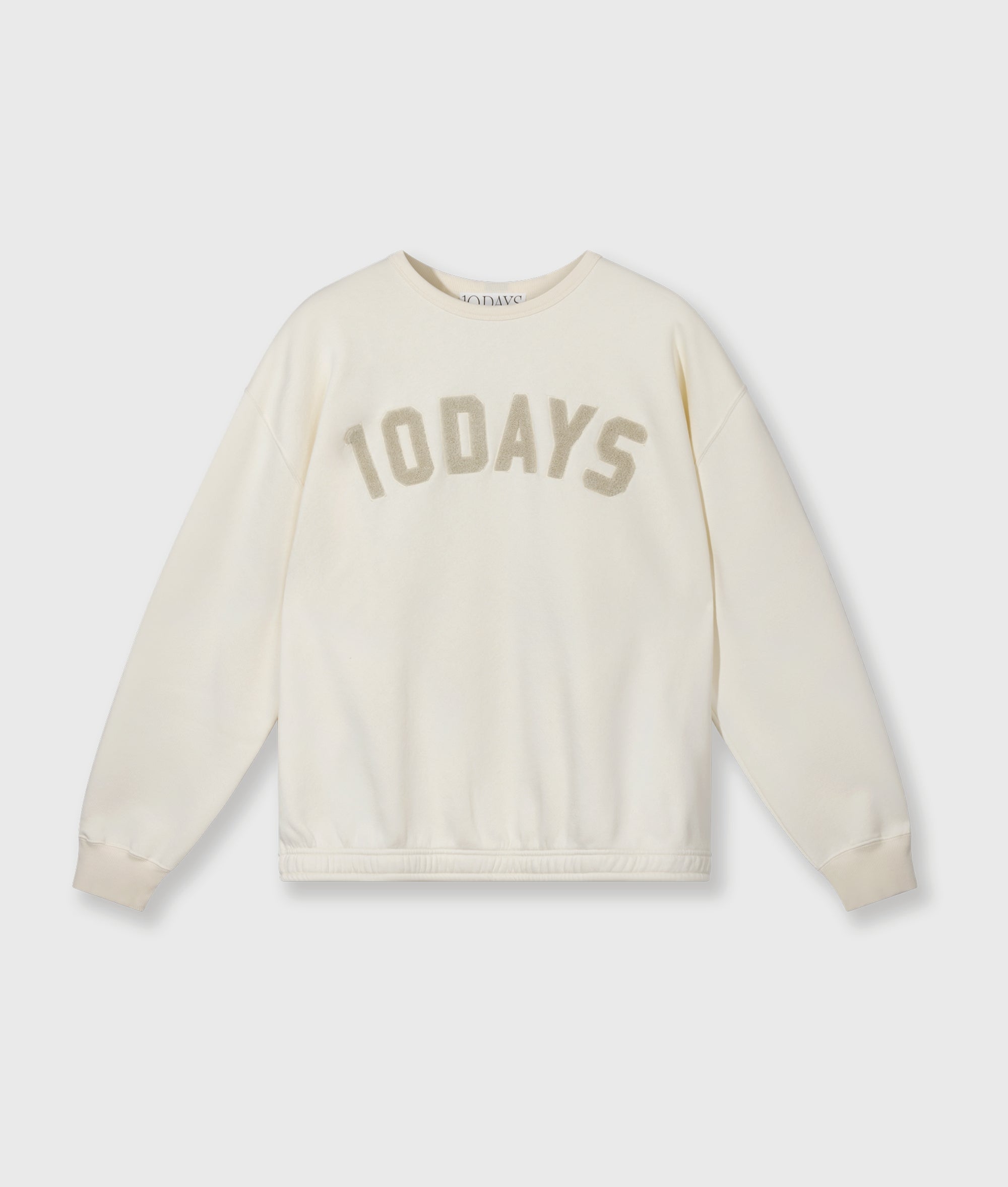 Oversized Fit Sweater aus leichtem Oldschool-Fleece. Mit einem Rundhalsausschnitt, Rippenstrickbündchen, überschnittenen Ärmeln und einer großen „10DAYS“-Grafik auf einem Satin-Aufnäher auf der Brust.