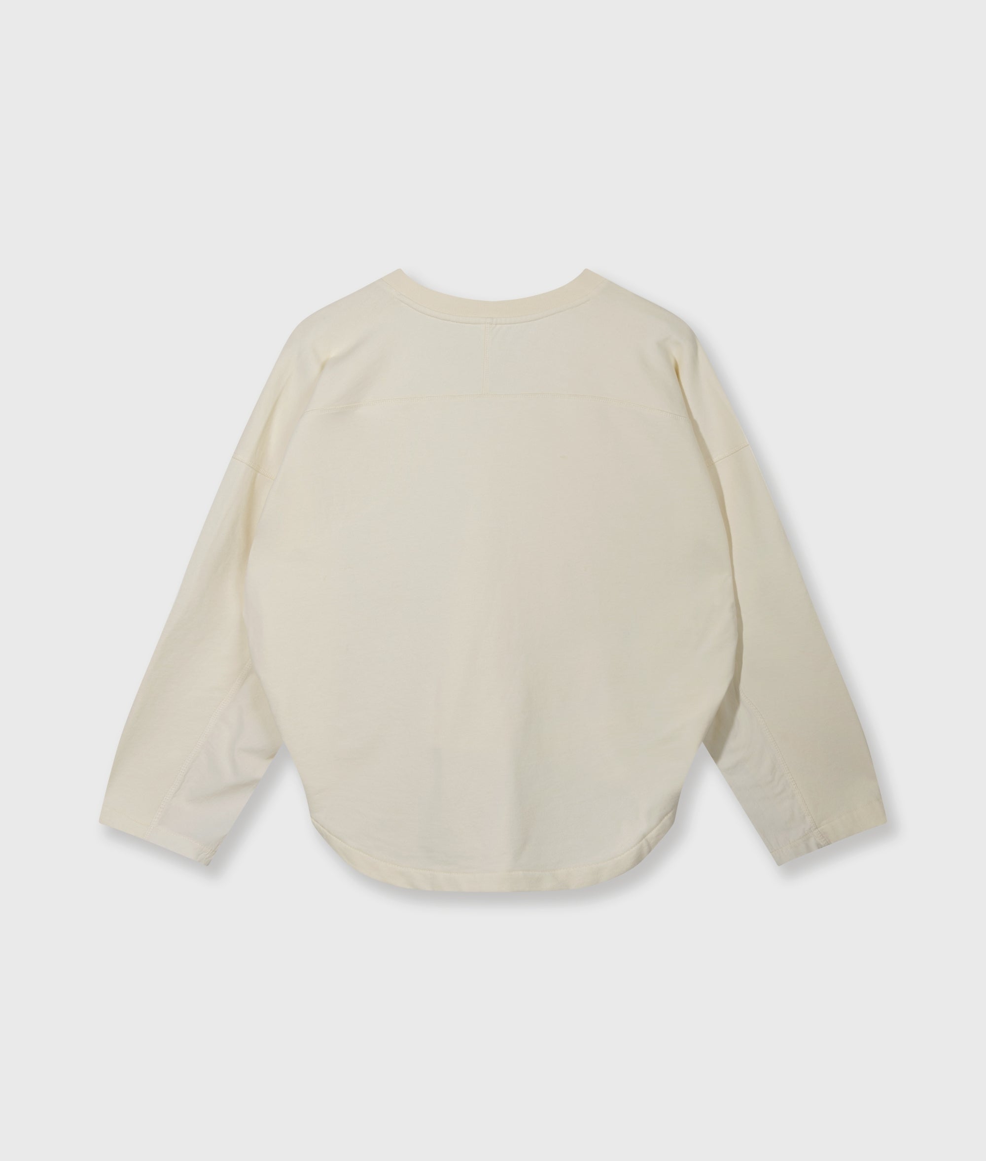 Oversized Fit Sweatshirt mit V-Ausschnitt, gefertigt aus weichem, GOTS-zertifiziertem Bio-Baumwollfleece. Versehen mit diversen Nahtdetails, einer Metallöse am Halsausschnitt sowie einer „10“-Monogrammstickerei auf dem Ärmel. Der untere Teil der Ärmel ist aus Popeline.