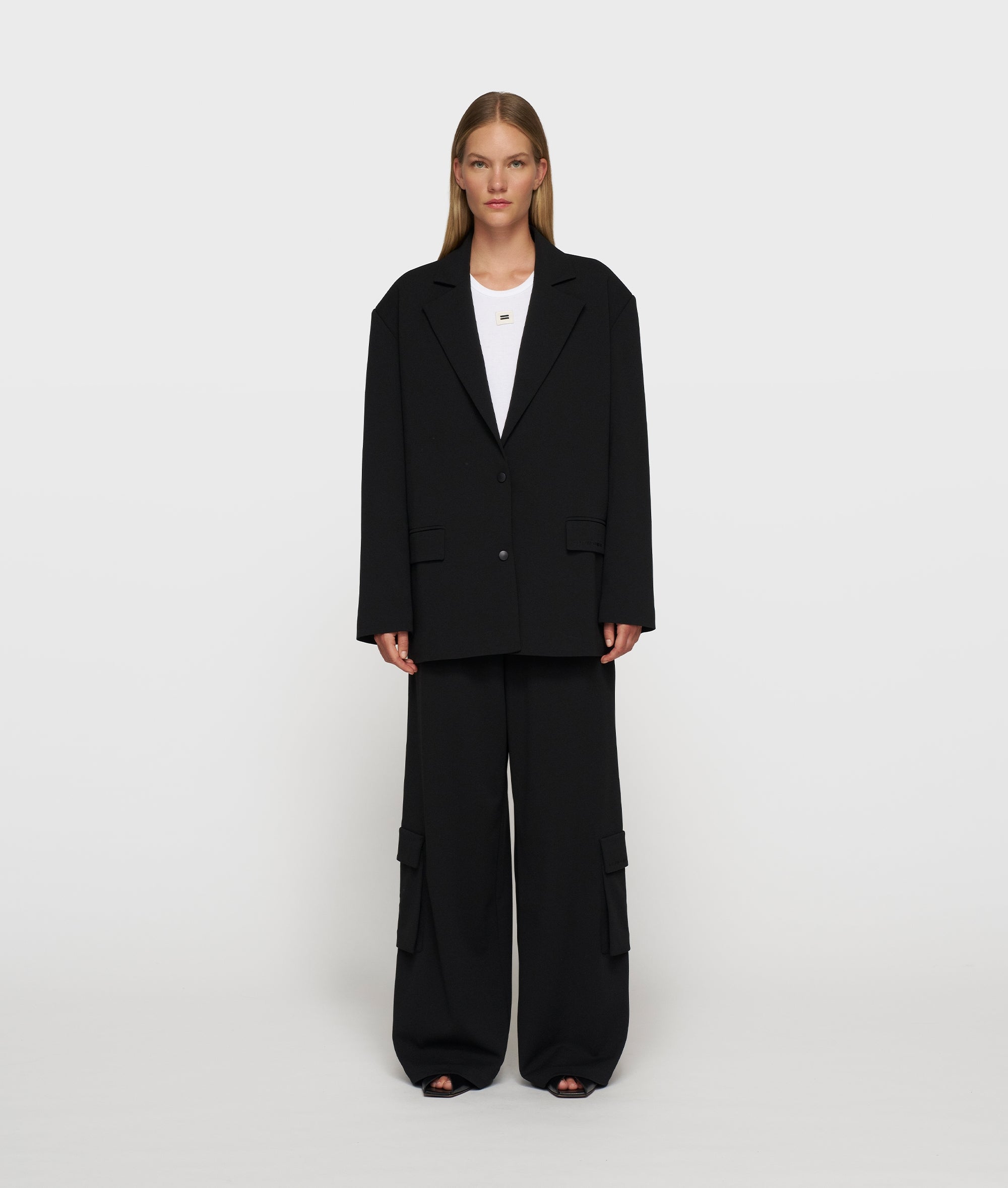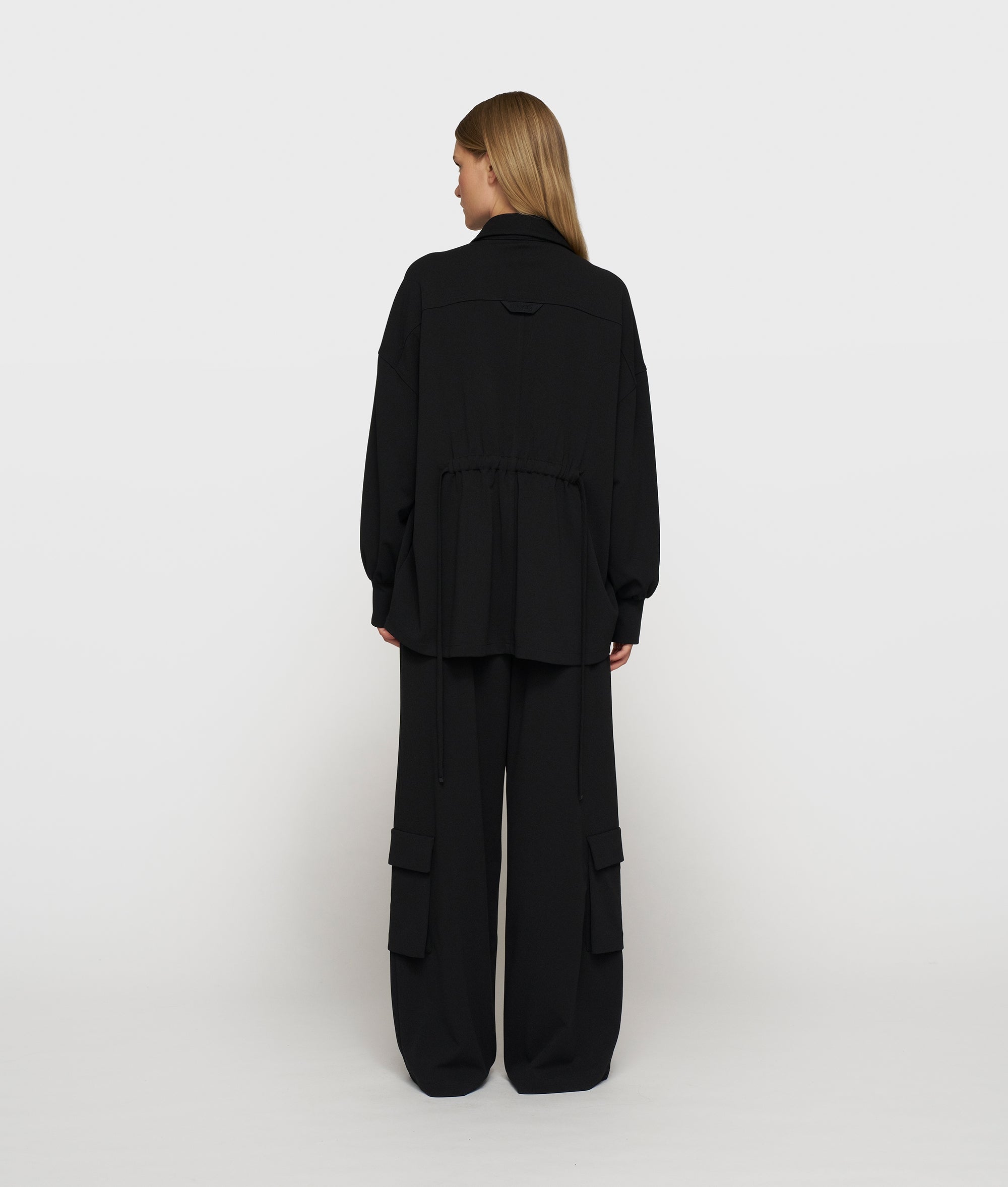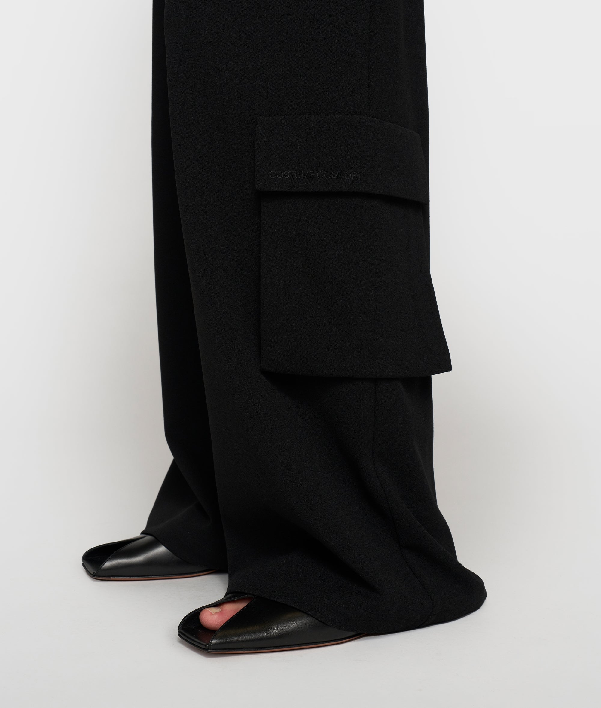 Diese Hose im Relaxed Fit und weitem Bein ist aus leichter schwarzer Crêpe-Stretch-Qualität gefertigt, die den ganzen Tag über einen hohen Tragekomfort bietet. Die mittelhohe Taille mit elastischem Bund und der Hosenschlitz mit Reißverschluss und Knopf sorgen für einen raffinierten, professionellen Look. Seitliche Eingrifftaschen, aufgesetzte Taschen und eine angedeutete Gesäßtasche verleihen der Silhouette einen modernen Touch. Die Stickerei „costume comfort“ auf der linken Tasche unterstreicht das markeneigene Design der Kollektion 10DAYS925.