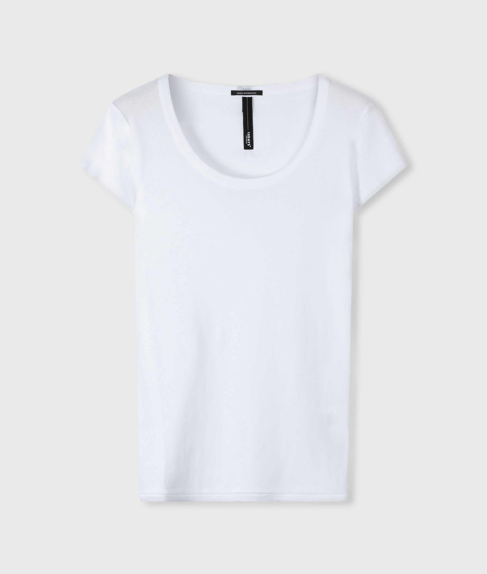 Slim Fit T-Shirt aus feinem Rippjersey. Mit einem runden Halsausschnitt und einem rückseitig, direkt unter der Halslinie applizierten Mini Stripes Logo.