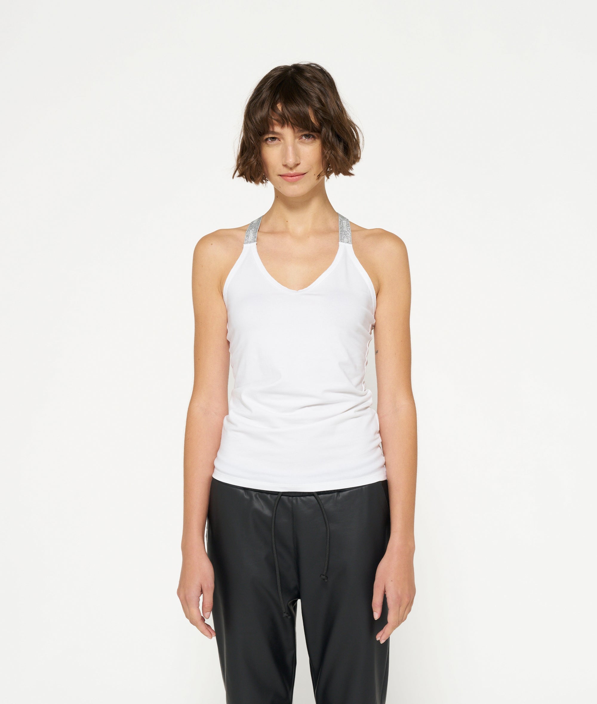 Slim Fit Singlet-Top mit im Rücken gekreuzten Lurex-Trägern, aus Bio-Baumwoll-Jersey gefertigt. Mit 10DAYS-Lurex-Trägern, einem Vintage-Finish am Halsausschnitt und einem rückseitig applizierten Mini Stripes Logo.