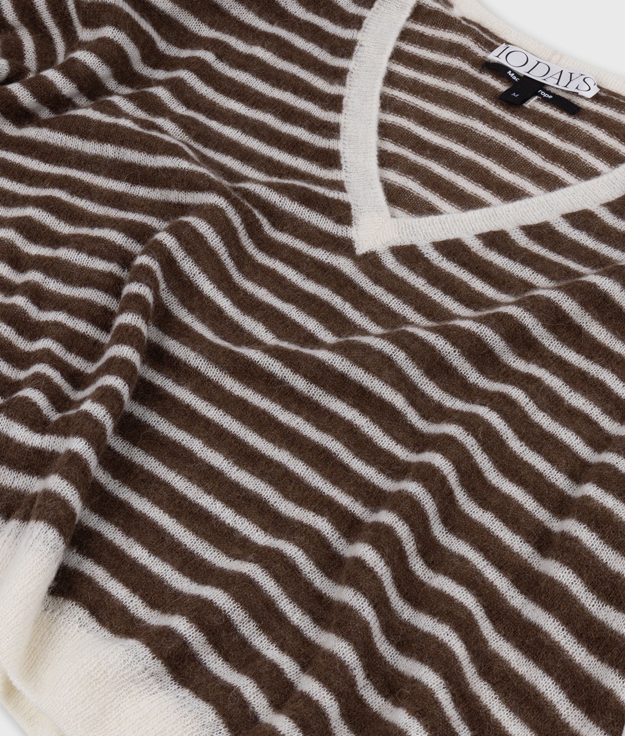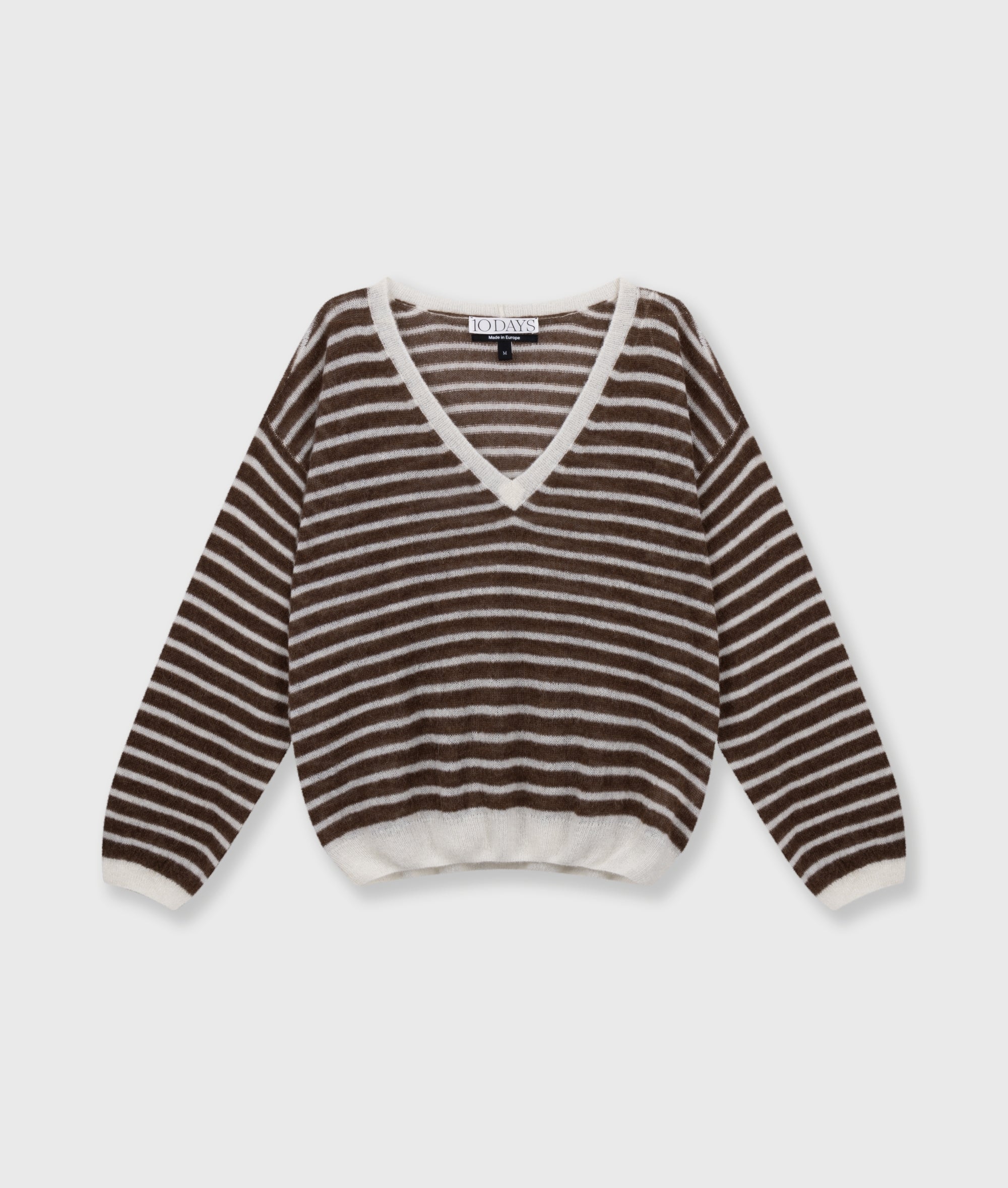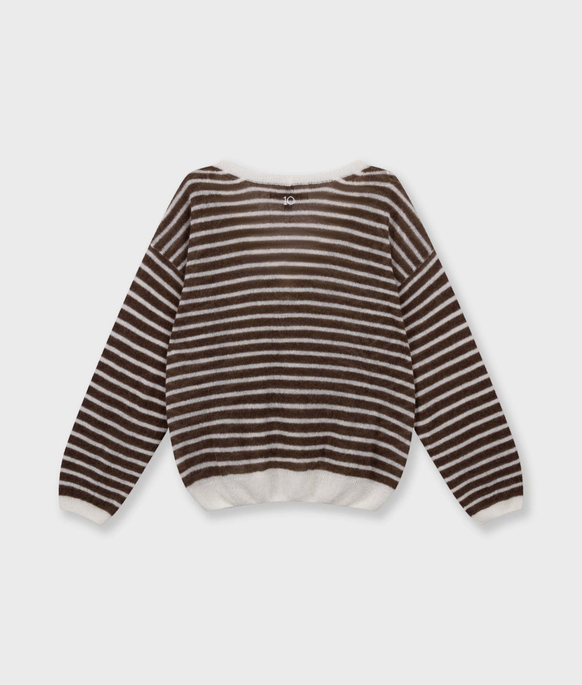 Relaxed Fit Feinstrickpullover mit V-Ausschnitt, aus einem weichen Alpaka-Woll-Mix gefertigt. Mit Rippenstrickbündchen, überschnittenen Ärmeln und einem auf dem Rücken aufgestickten „10“-Monogramm.