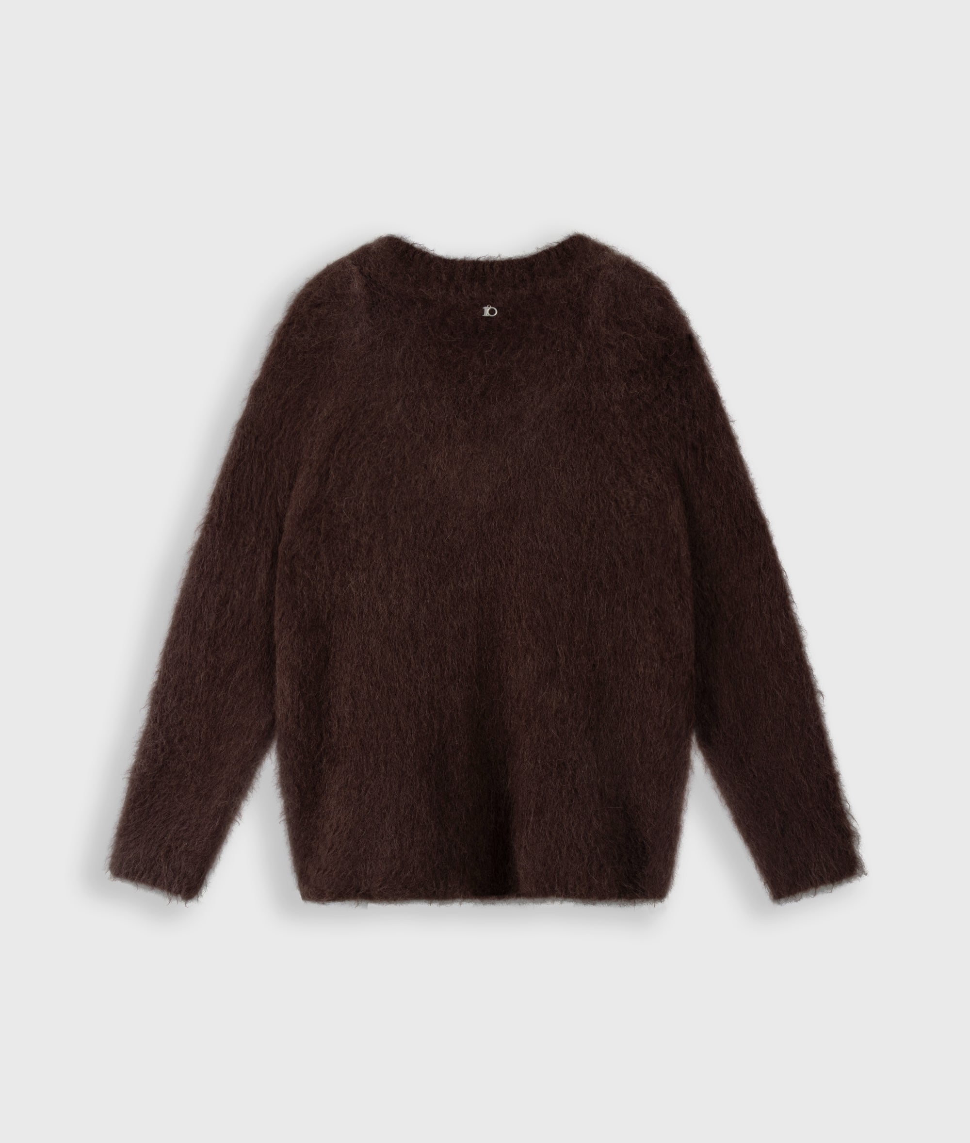 Oversized Fit Strickpullover mit V-Ausschnitt aus weichem Alpaka-Woll-Mix. Mit breiten Rippenstrickbündchen am Hals, an den Ärmelabschlüssen und am Saum, einem am linken Unterarm applizierten Tagline-Label und einer aufgestickten „10“-Monogramm-Perle auf dem Rücken.